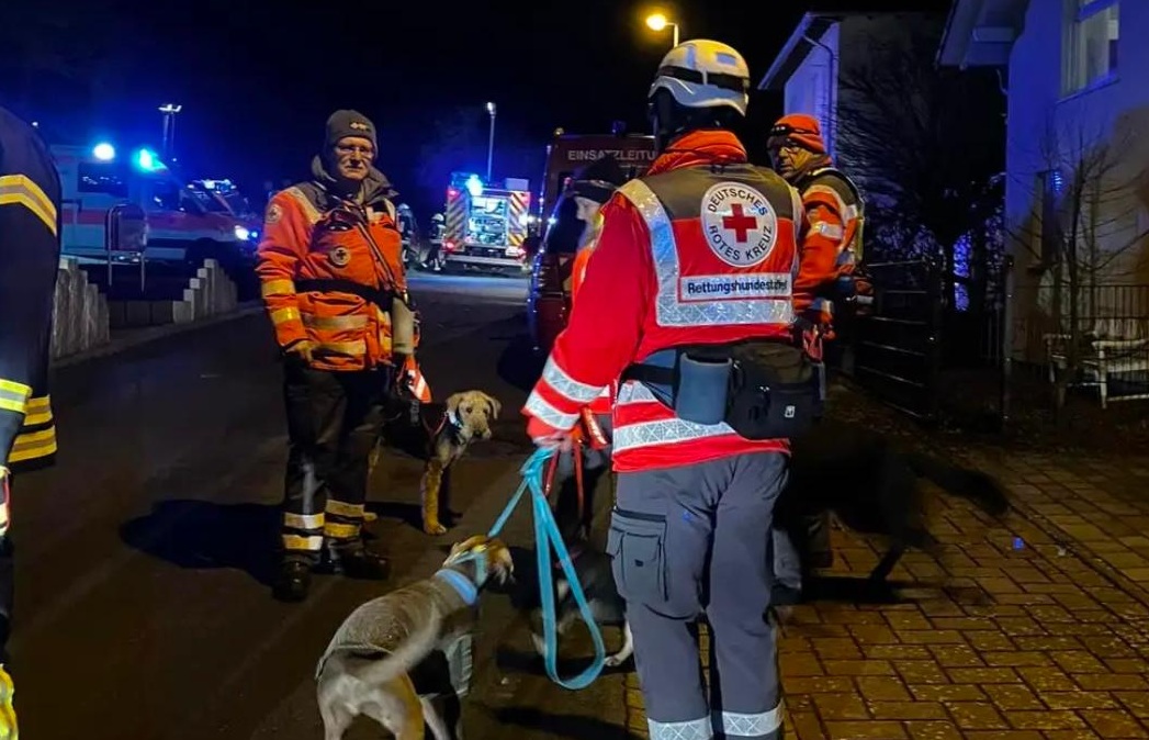 In der Nacht wurden unsere Trümmerhunde zu einer Personensuche nach einer Gasexplosion bei Hadamar gerufen. Wir waren nach kurzer Zeit mit fünf Trümmerteams vor Ort.